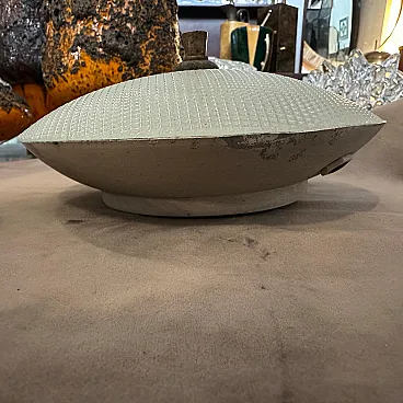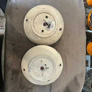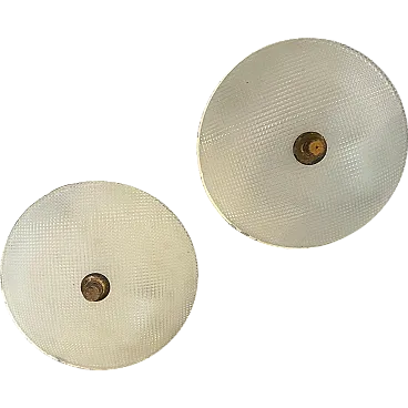 Pair of round brass and glass wall lamps, 1950s