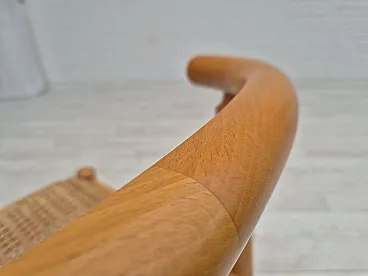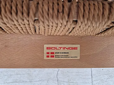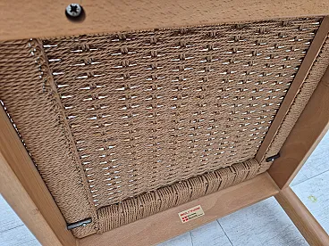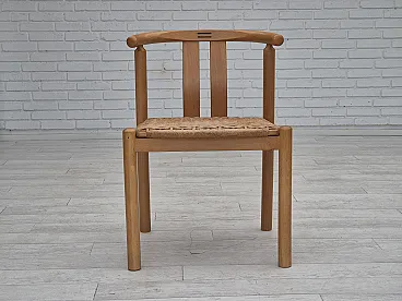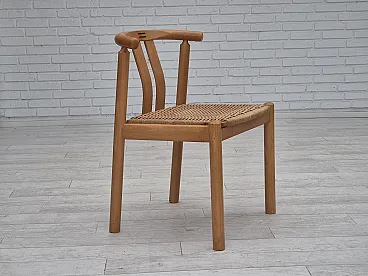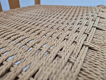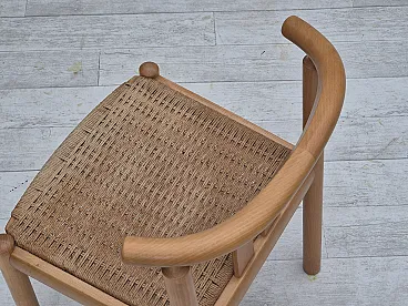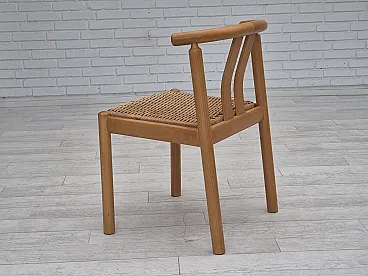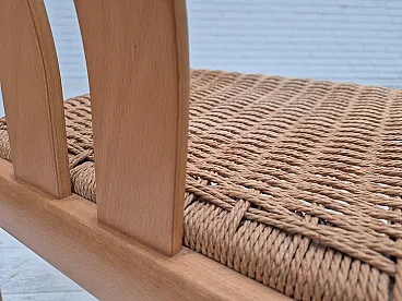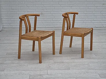1970s, Danish design by Hans J. Frydendahl for Boltinge Stolefabrik. Pair of chairs model "Cleopatra" in lacquered beech wood. Original very good condition: no smells, no stains, and stable construction. The body part is inlaid with exotic wood, which provides a refined contrast between the materials. The seat is woven from paper cord, a durable and comfortable choice that is often seen in Danish design and improves both functionality and aesthetics. The "Cleopatra" model is known for its minimalist elegance and robust construction, making it a sought-after collector's item for enthusiasts of mid-century furniture. Manufactured by Danish furniture maker Boltinge Stolefabrik in about 1975s. Original Scandinavian design directly from Denmark. The chairs were checked by craftsman.