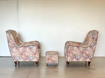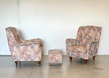 Pair of armchairs and pouf, 60s