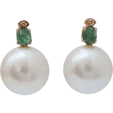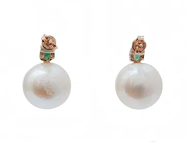 Earrings with pearls, emeralds, diamonds and pink gold, 2000s