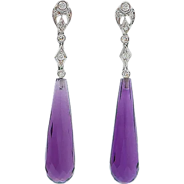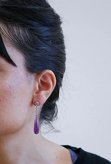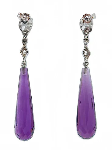 Amethysts, diamonds, 14 Karat white gold earrings, 1970s