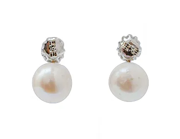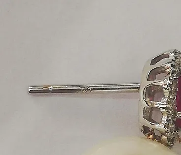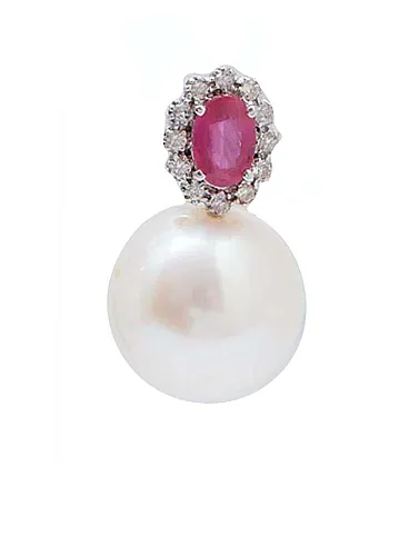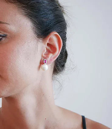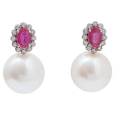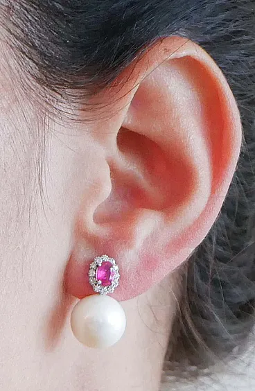Earrings with pearls, rubies, diamonds, 18K white gold, 2000s