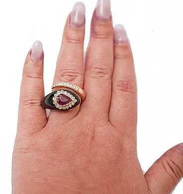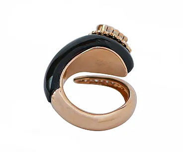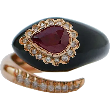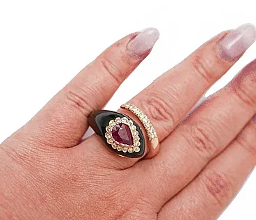 Rose gold snake ring with onyx, ruby, diamonds, 2000s
