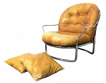 Armchair "915" Design Carlo De Carli Cinova production. The armchair is of Italian manufacture of the 70's, tubular metal frame with chrome plating in perfect condition, cover and original cushions made of Natural Leather, completely sanitized. Literary sources : Repertory GIULIANA GRAMIGNA -Mondadori Pag.290. Seat height cm 40.
