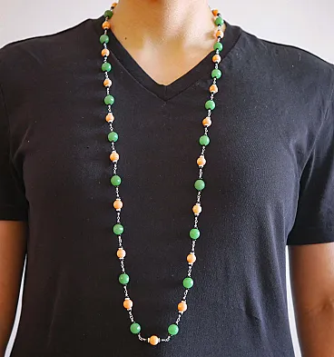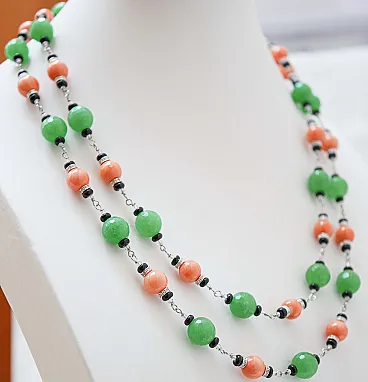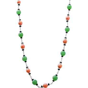 Necklace in gold, coral, onyx, jade, diamonds, crystal, 1970s