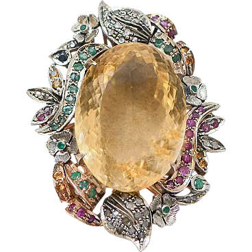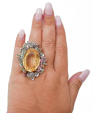 Ring with topaz, rubies, emeralds, sapphires, diamonds, 1970s