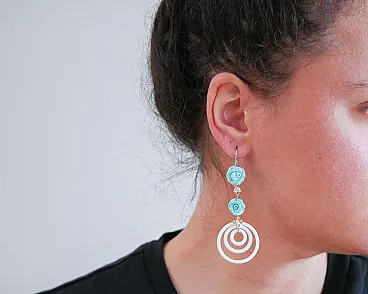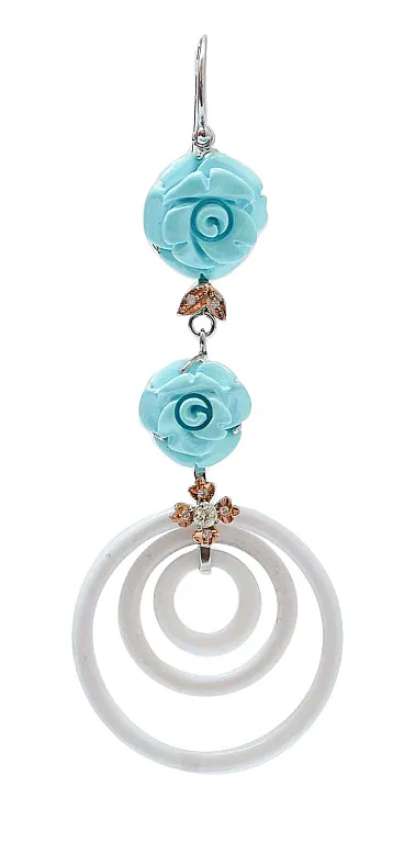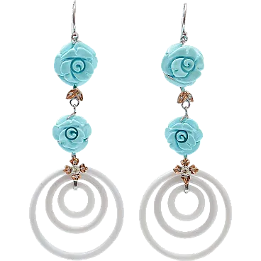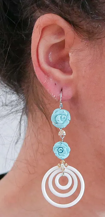 Earrings in turquoise, agate, diamonds, gold, 1950s