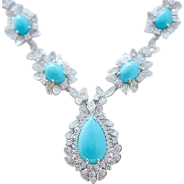 14K white gold necklace with turquoise and diamonds, 1970s