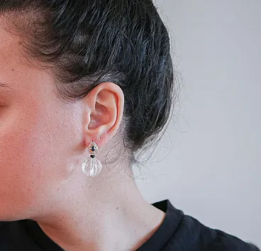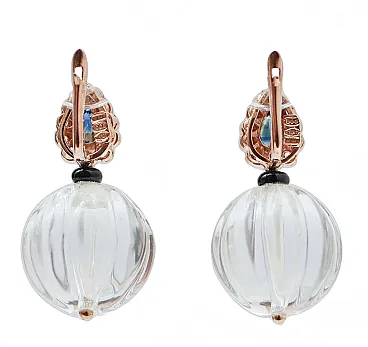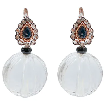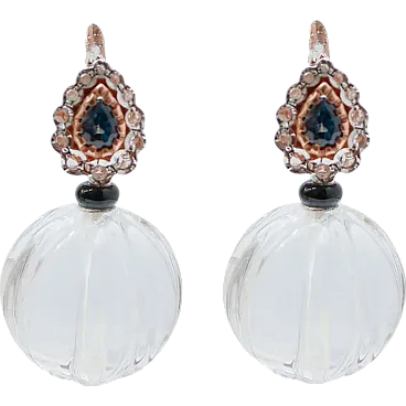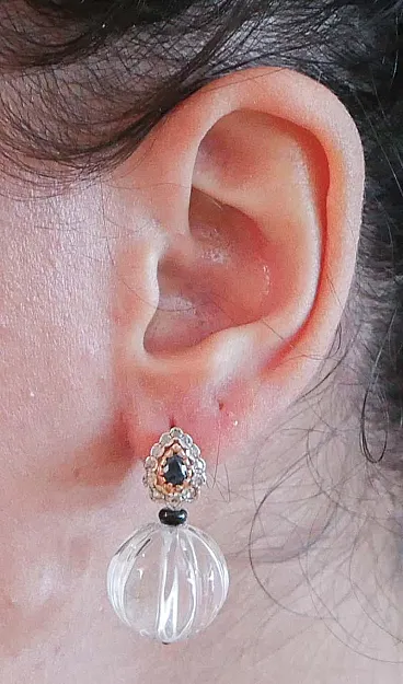SHIPPING POLICY: No additional costs will be added to this order. Shipping costs will be totally covered by the seller (customs duties included). PS: THIS POLICY IS NOT APPLICABLE TO ITEMS WITH FIX PRICE, ITEMS AT AUCTIONS ,ONGOING PROMOTIONS AND ITEMS ON SALES. Amazing earrings in 9 kt rose gold and silver structure mounted with a drop sapphire surrounded by diamonds in the upper part. In the middle, an onyx and, below, a rock crystal. These earrings were totally handmade by Italian master goldsmiths and they are in perfect conditions. Diamonds 0.45 ct Sapphires 0.84 ct Rock Crystal 14.75 gr Total Weight 18.40 gr RF +EGI For any informations, feel free to contact the seller through the message center.