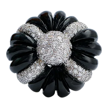 Onyx, diamonds, 14 karat white gold ring, 1970s