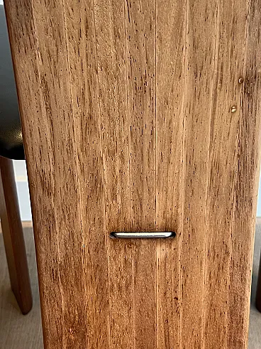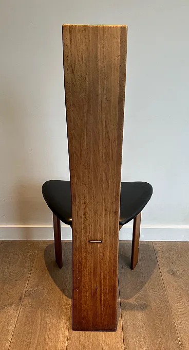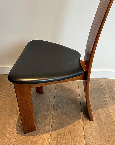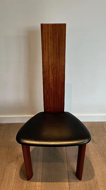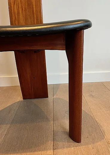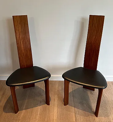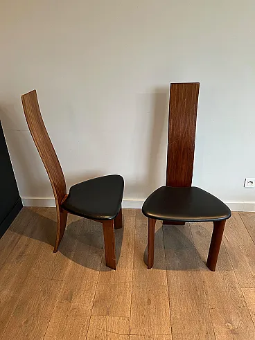 Pair of exotic wood and black leather chairs, 1970s