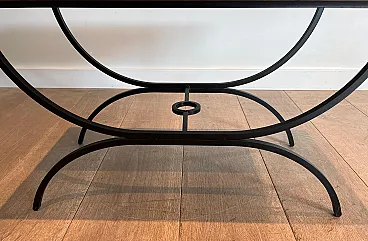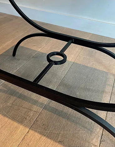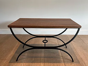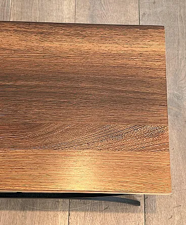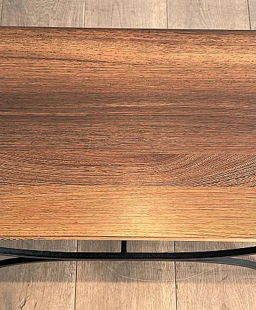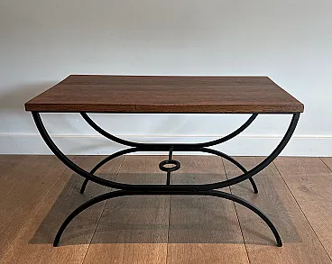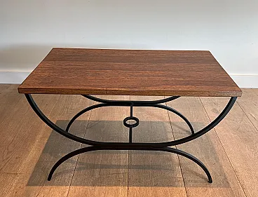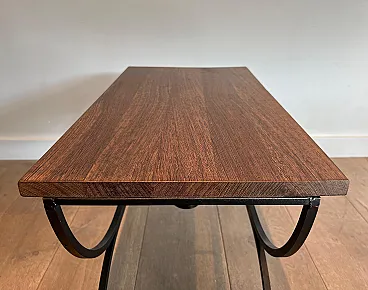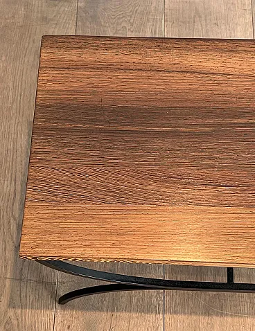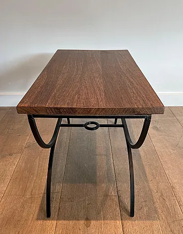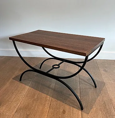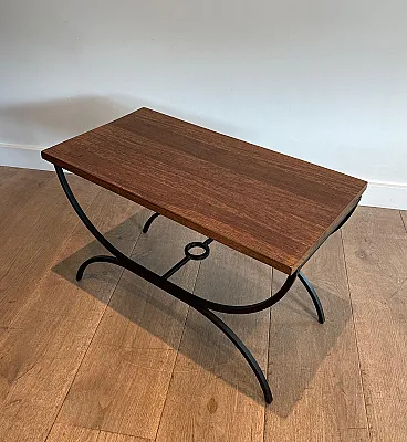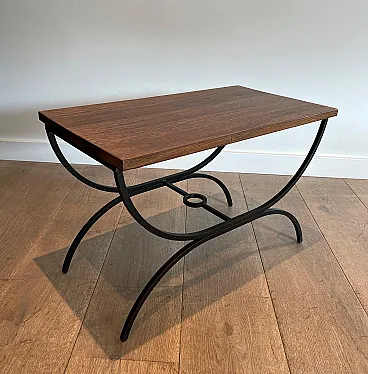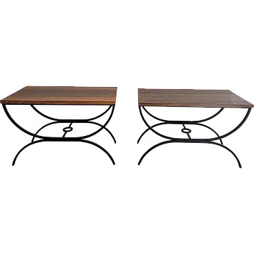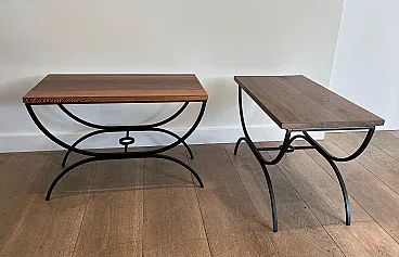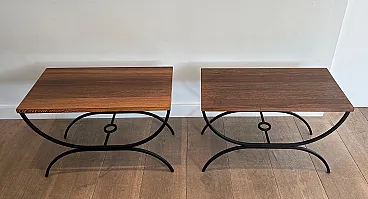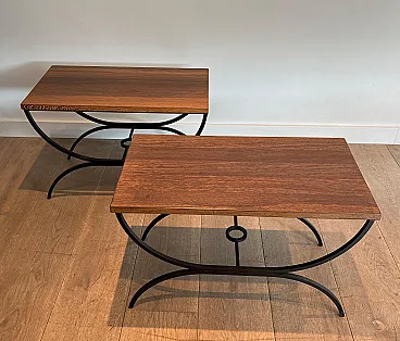 Pair of small tables in black lacquered metal and exotic wood, 1950s