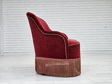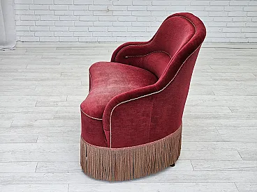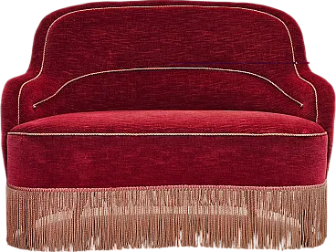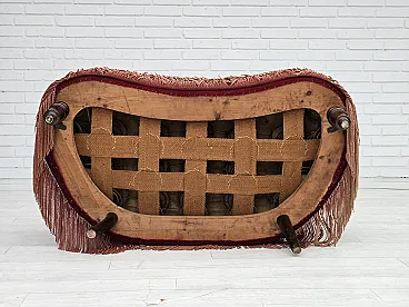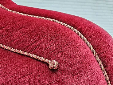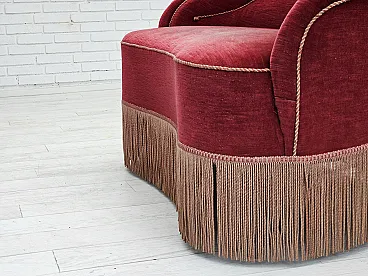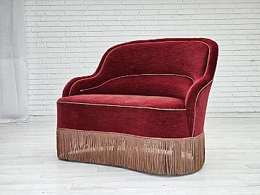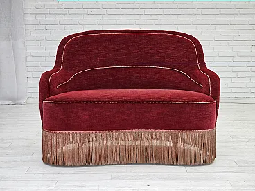 1950s, Danish 2-seater curved sofa, cherry-red furniture velour.