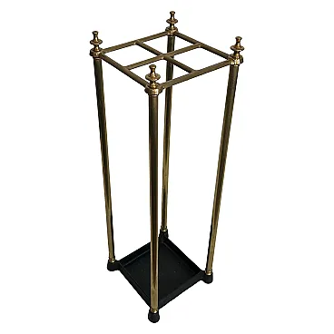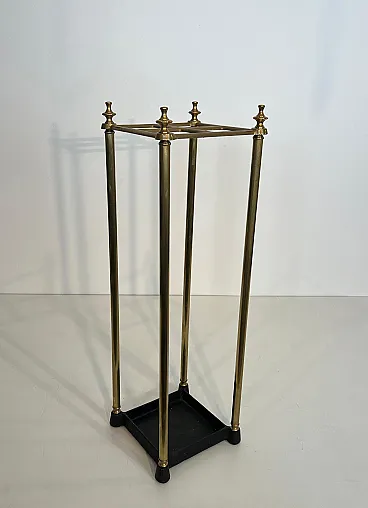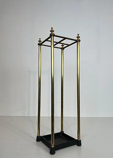 This nice and simple square umbrella stand is made of brass with a cast iron base. This is a French. work. Circa 1900
