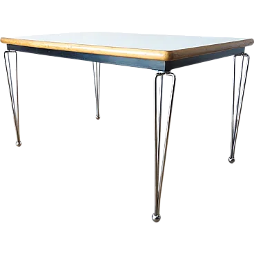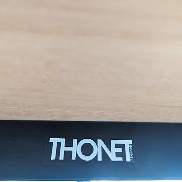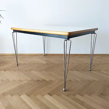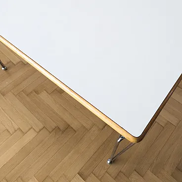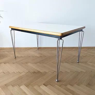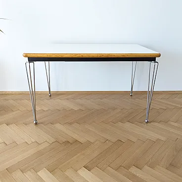 High quality sturdy dining table designed by Dutch architect Marius van den Wildenberg for Thonet in 1988. Made of solid wood and chrome plated tubular steel. White laminated top. In a very good condition with minor traces of wear and age.