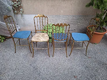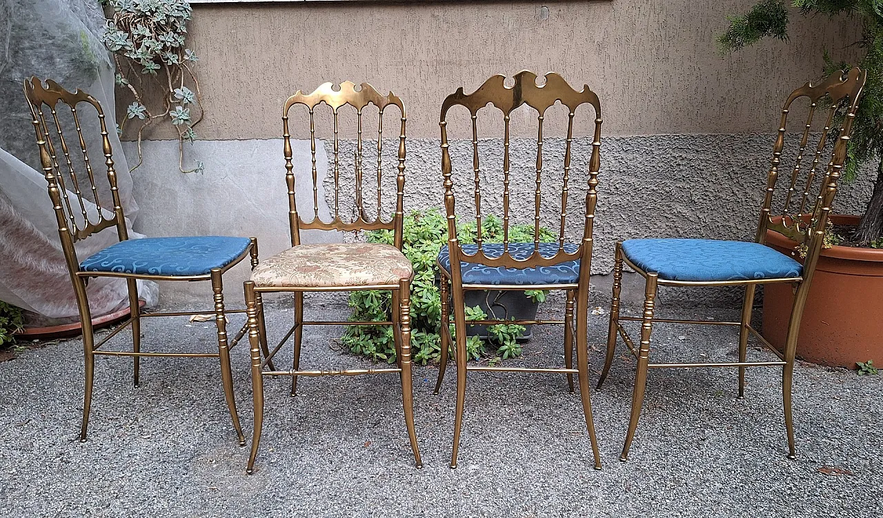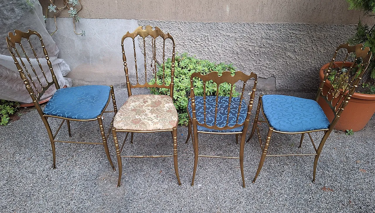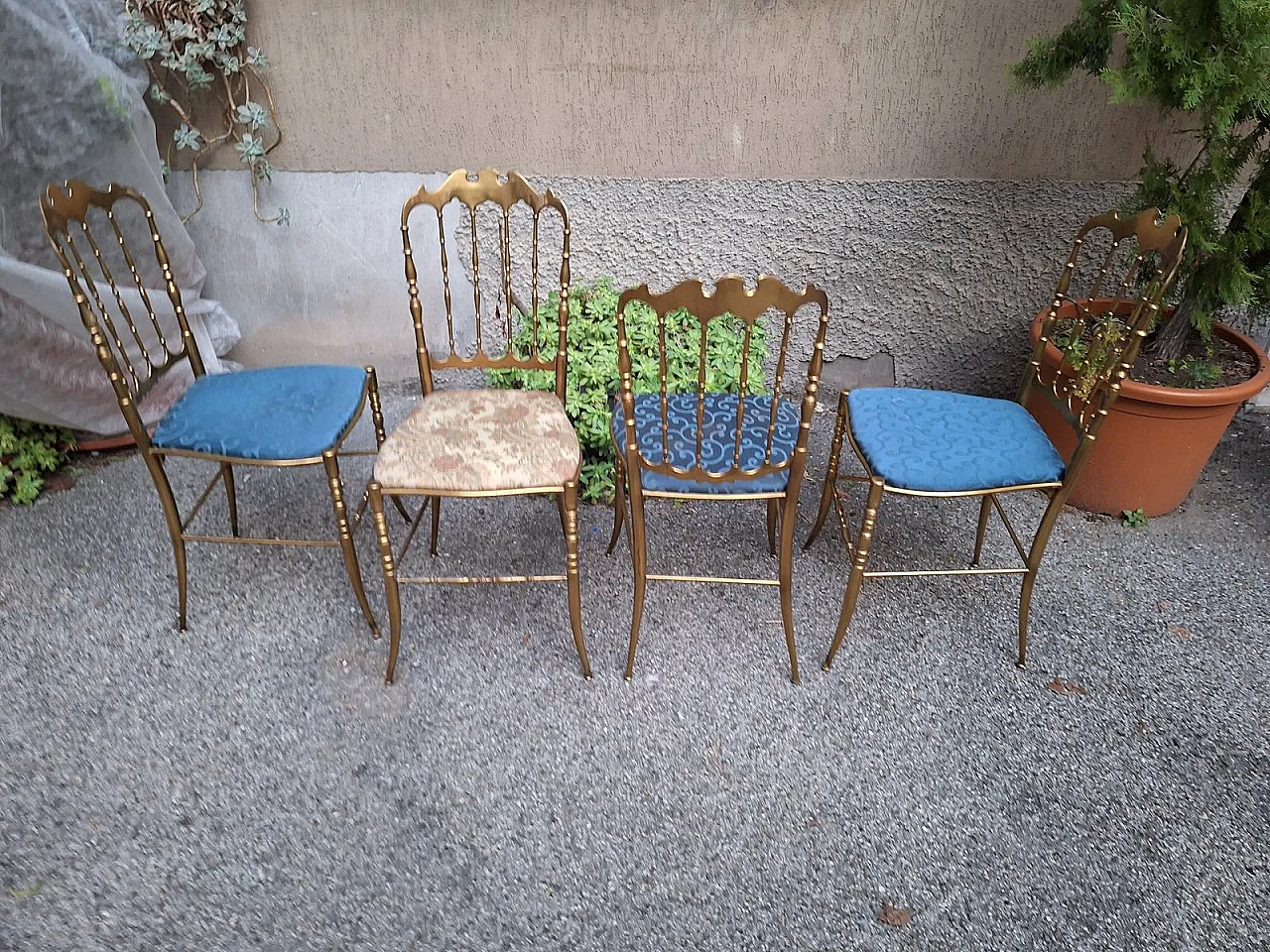 4 Chiavarina brass chairs with upholstered seat, 1960s