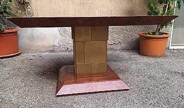 Marcus Dining Table in Briarwood and Brass by Luciano Frigerio for Frigerio Di Desio, 1960s
