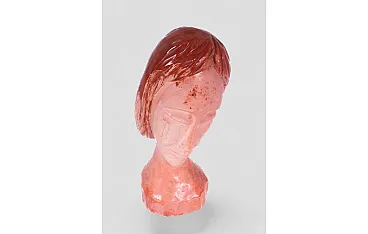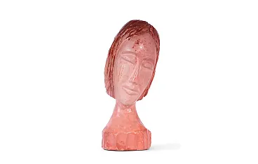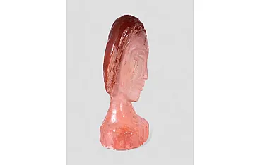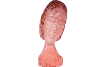 This captivating plaster sculpture depicts a delicate female face, created by the artist Enzo Bisi, as indicated by the signature engraved on the back. The serene and contemplative expression of the subject, with soft and curvilinear features, captures an atmosphere of introspection and tranquility. The finely crafted bust has a warm, smooth finish, emphasized by the texture of the plaster. The head, slightly tilted to the side, adds a sense of dynamism and humanity to the sculpture. A perfect piece for art and design enthusiasts looking to add a refined work to their collection. Height 34 cm Width 15cm Depth 11 cm