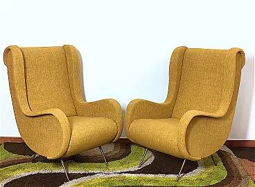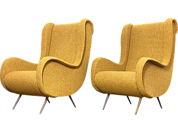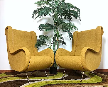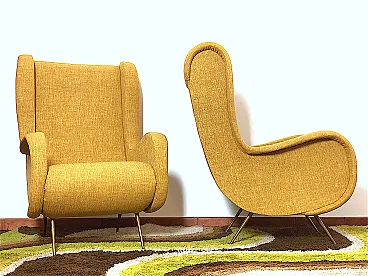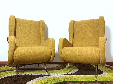 Pair of yellow armchairs in Marco Zanuso style, 50s
