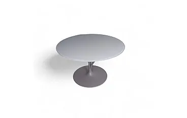 Elegant and designer, the ACACIA table by Calligaris stands out for its modern and refined aesthetic. The painted grey metal base harmoniously complements the round satin-tempered glass top, creating a furniture piece that enhances any space in the home, from the kitchen to the living room or office. The sturdy metal structure provides stability, while the satin glass top adds a touch of lightness and brightness. with its clean, contemporary lines, this table is perfect for those seeking a visually impactful piece that combines functionality and style. The ACACIA model is an excellent choice for creating a welcoming and sophisticated atmosphere. Height 75.5 cm Diameter 120 cm