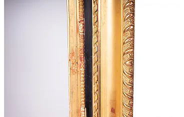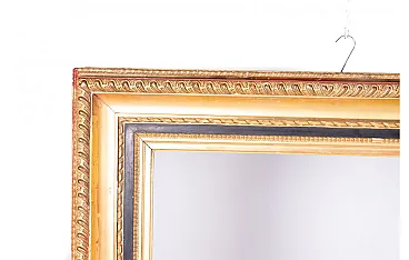 This beautiful gilded frame from the early 1900s exudes timeless elegance, bringing charm to any setting. Crafted from solid wood and finely gilded, it features intricate carvings that enhance its beauty and unique artisanal quality. Decorative details along the edges, with delicate curves and floral motifs, add a refined touch that complements classic or vintage furnishings. Perfect for framing a mirror or artwork, this frame serves as a striking piece in a living room or entryway. Height 80 cm Width 93 cm Depth 10 cm