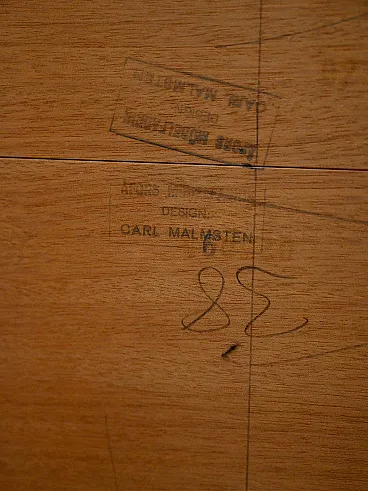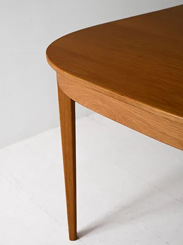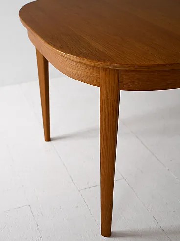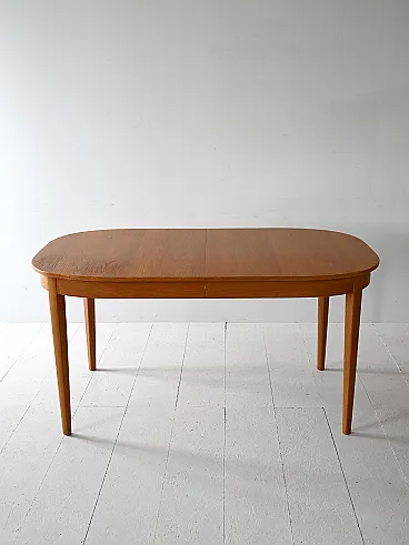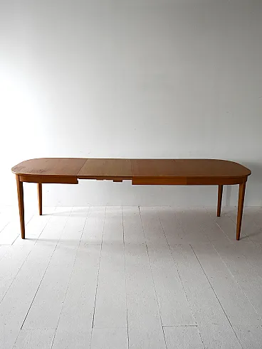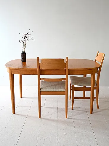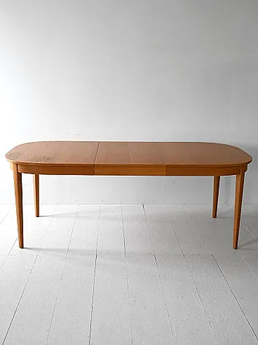 Elegant oak dining table designed by Carl Malmsten, Swedish production late 60s. 185 cm, extends up to 350 cm thanks to three 55 cm lengthens each, offering great versatility.