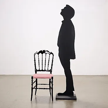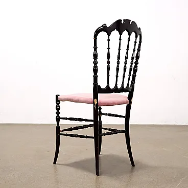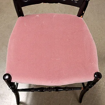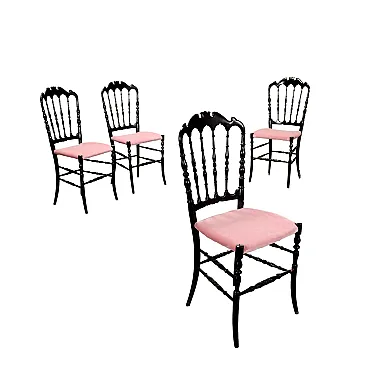 4 Chaivarina style chairs in black wood and pink velvet, 1950s