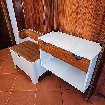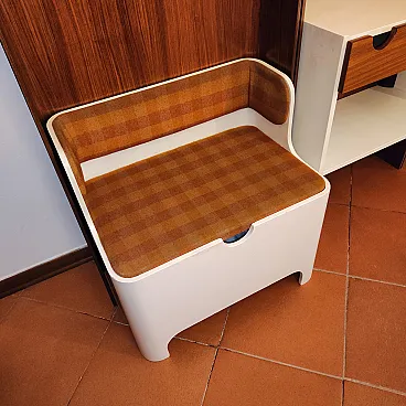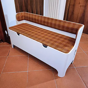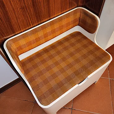 - Small sofa (60x60x40 cm) in white lacquered wood and padding on seat and back, original fabric in practically perfect state, opening session.