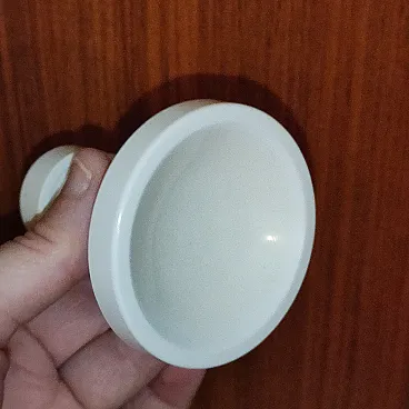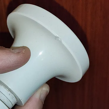Made of teak wood curved with holes for the housing of the white bachelite knobs.