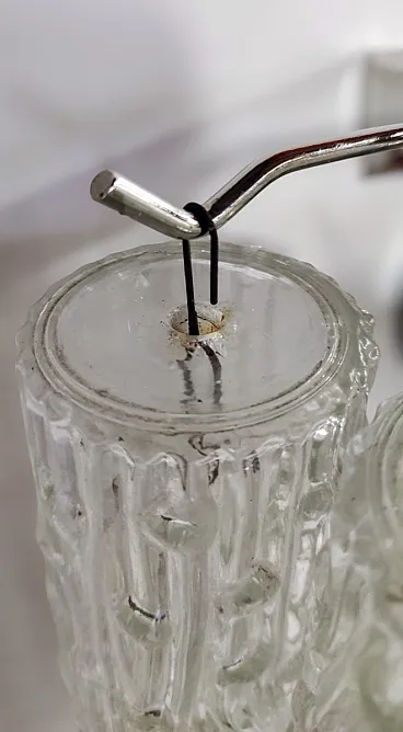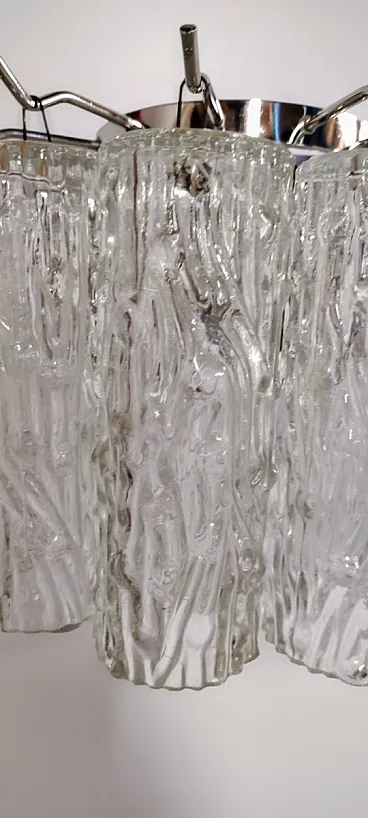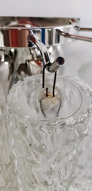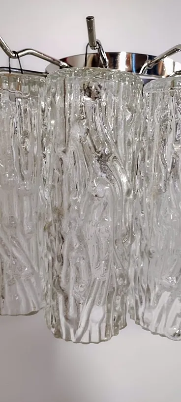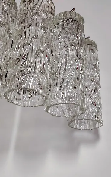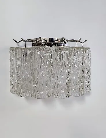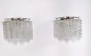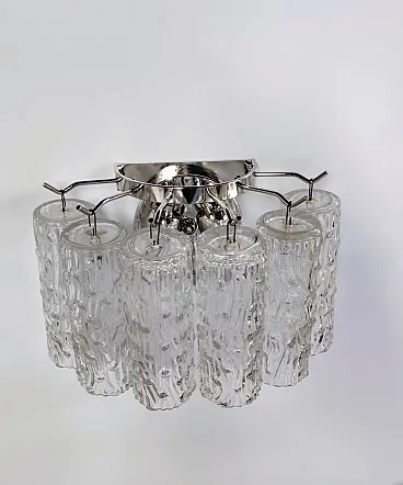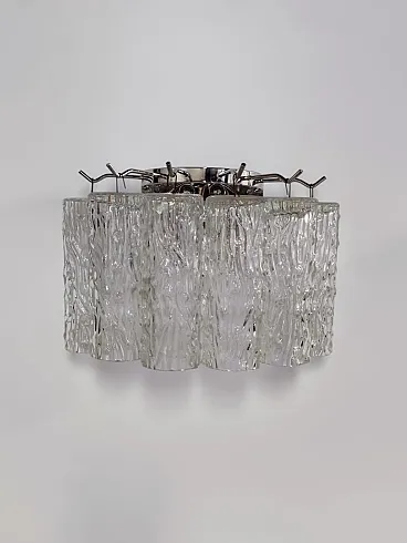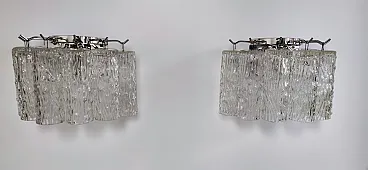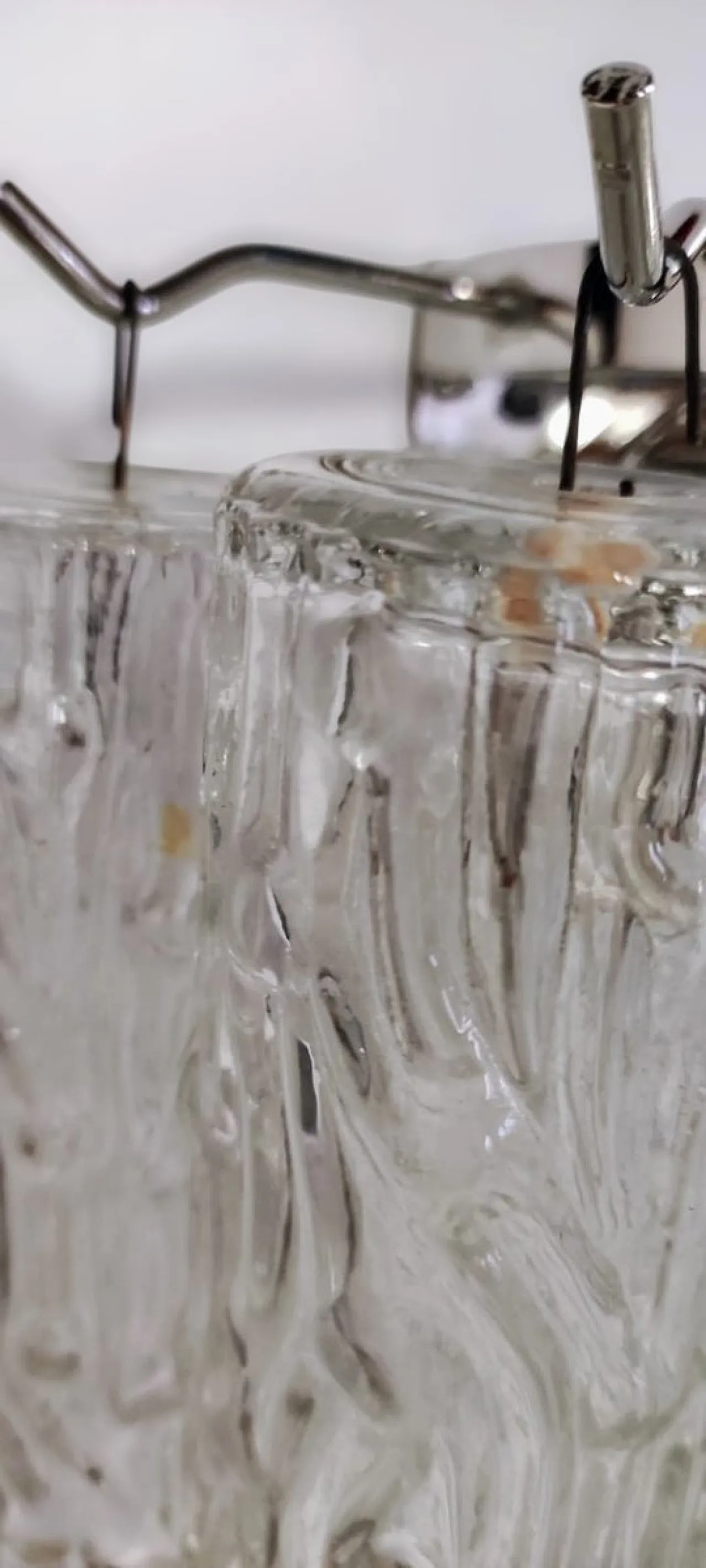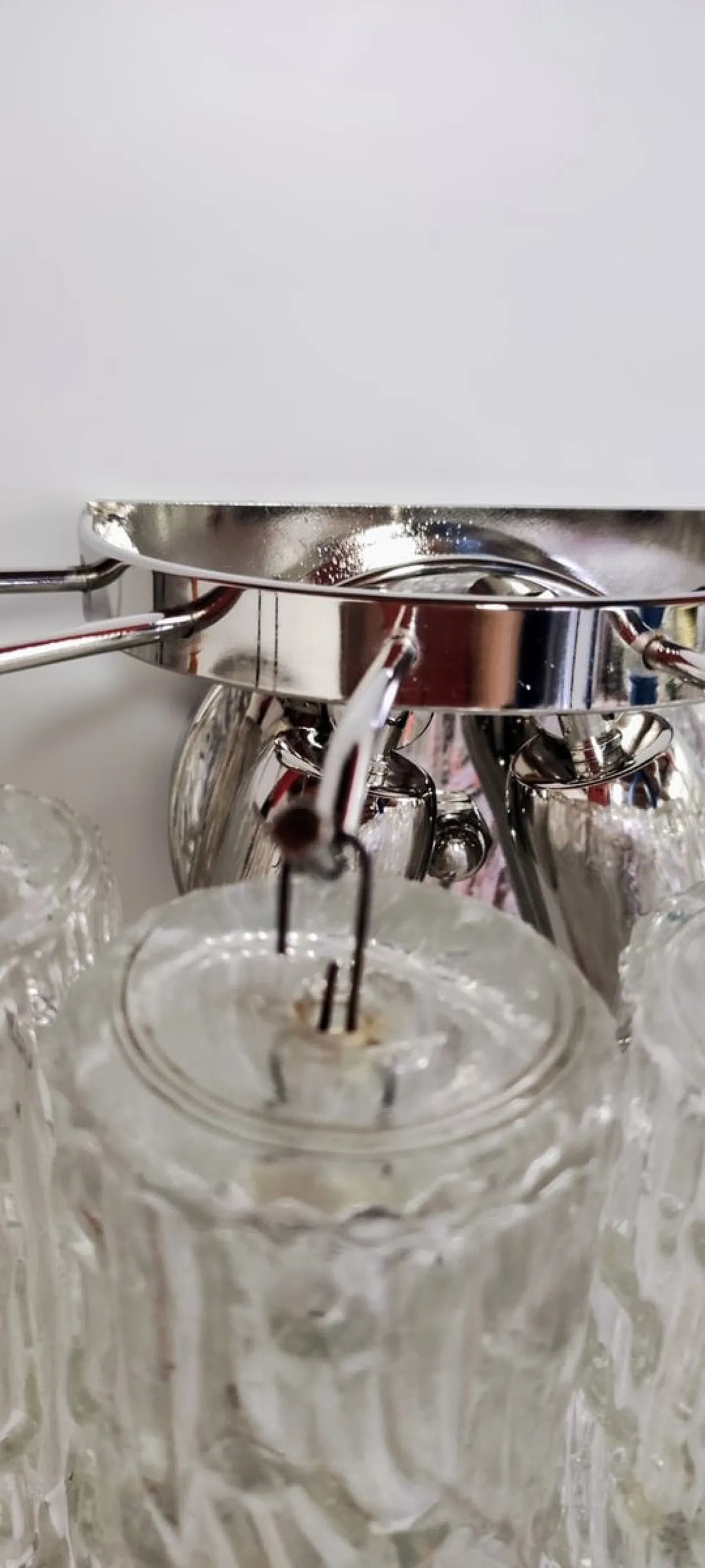 Elegant 1970s Murano glass sconces consisting of a series of six clear "rippled" glass tubes. Restored chrome mount, fits two E 14 light bulbs.