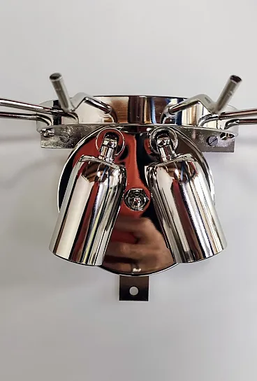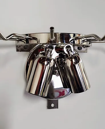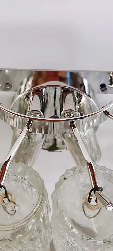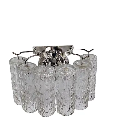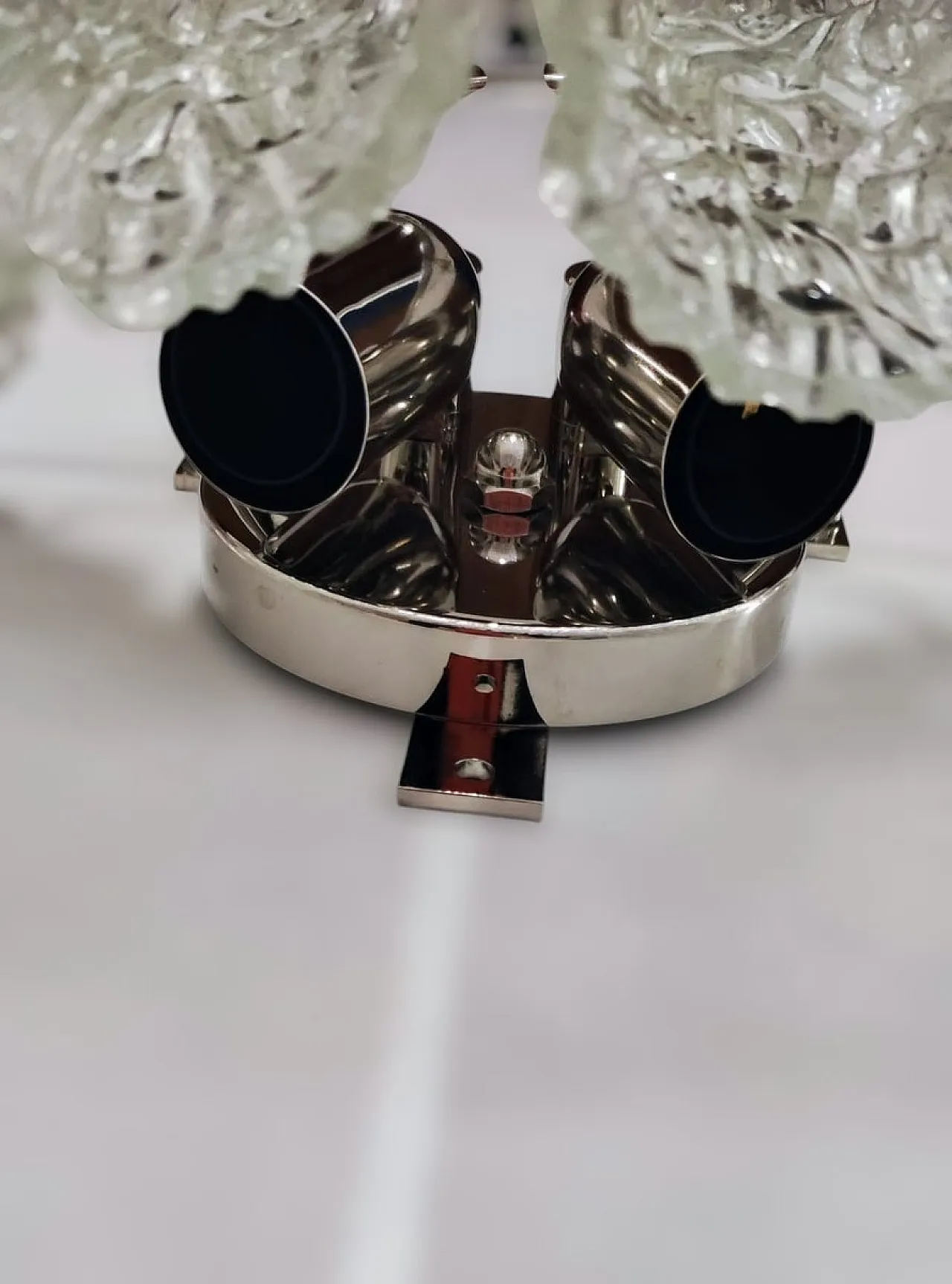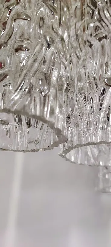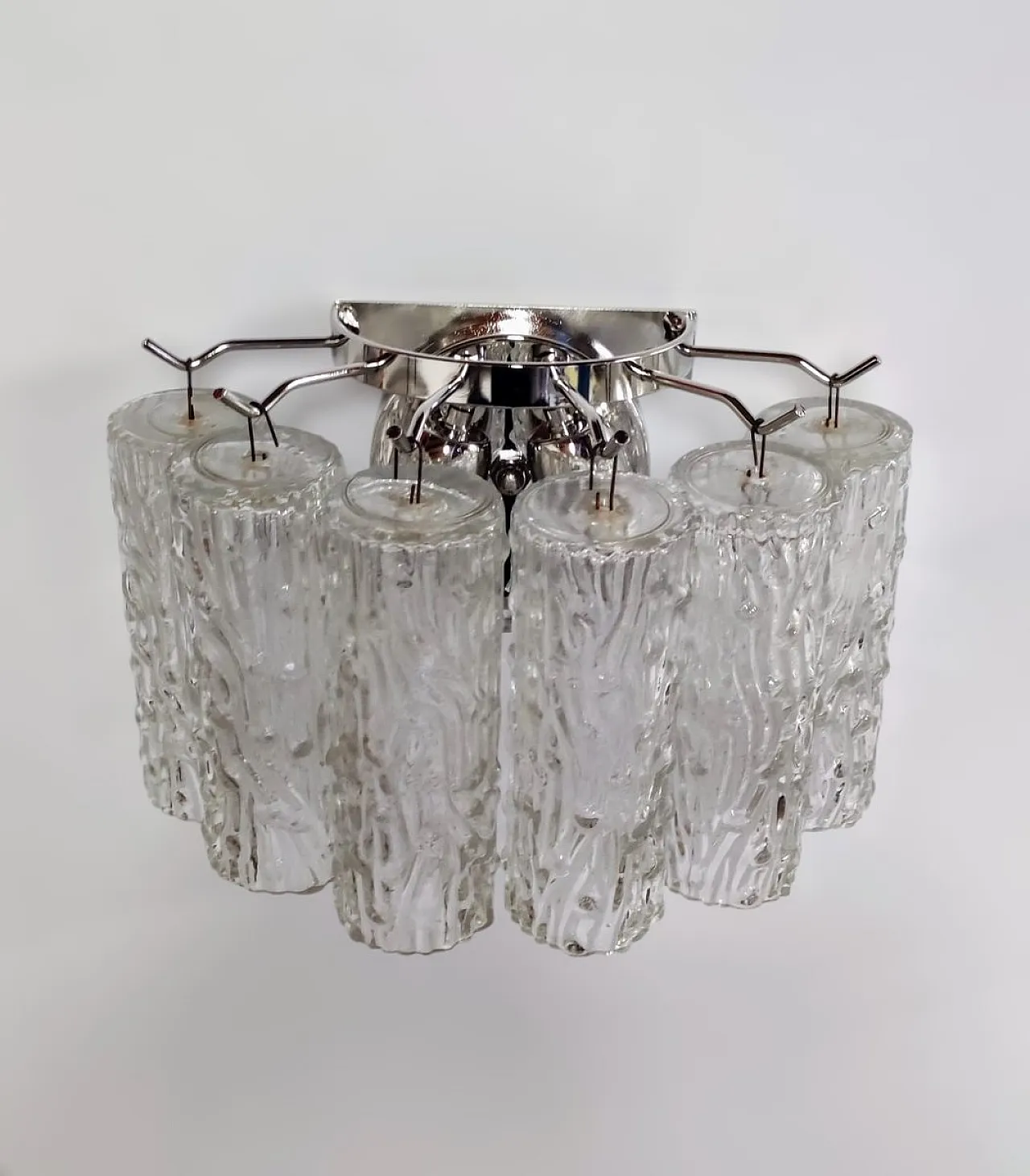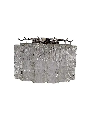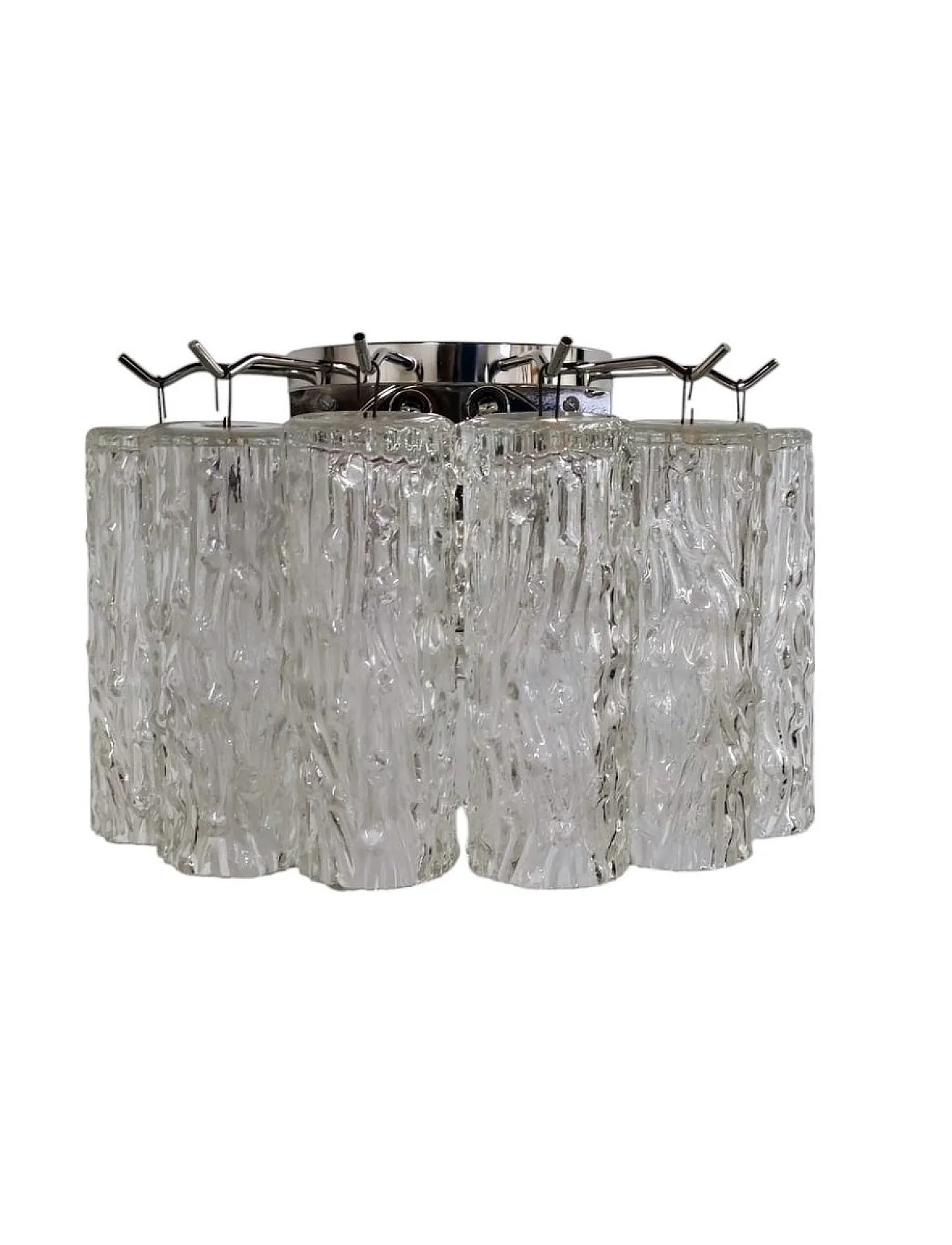 Elegant 1970s Murano glass sconces consisting of a series of six clear "rippled" glass tubes. Restored chrome mount, fits two E 14 light bulbs.
