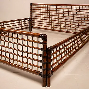 Beautiful and luxurious bed belonging to the "Marango" series designed by Alberto Smania and produced by the Domia Studio internal company in 1967. The subject of extraordinary workmanship and use of the materials, combining brass rods, Italian rod and finished on the corners in leather laces, the maximum of the Italian manufacture of the time. It presents itself in good vintage condition as per photographs with tiny signs of time, given its age. Currently unique on the market and very rare given the high cost to the public of the time.