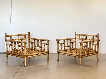 Pair of bamboo armchairs Vivai del Sud, 70s