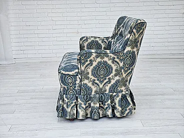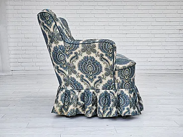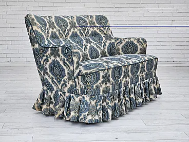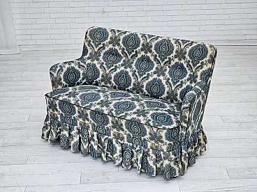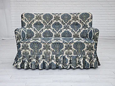 1970s, Danish 2-seater sofa. Blue/white furniture fabric, springs in the seat, beech wood legs. Very good condition: no smells, no stains, and stable construction. Manufactured by Danish furniture maker in about 1970-75s. Original Scandinavian vintage design directly from Denmark. The sofa was checked by craftsman.