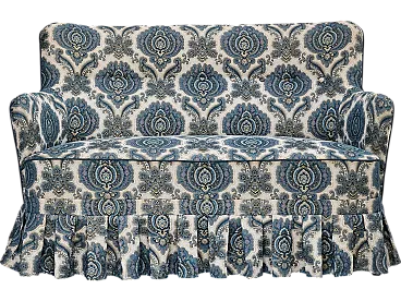 Danish 2-seater sofa, blue/white, beech wood, 1970s