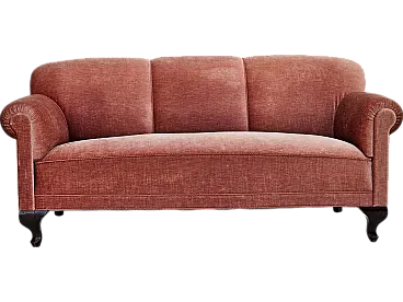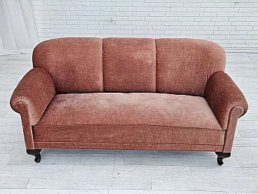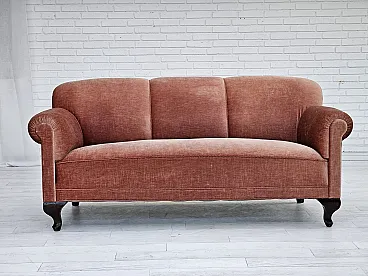 Danish 3-seater sofa, salmon-pink velour, ash wood, 1960s