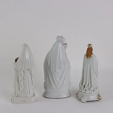Group of thirteen religious figures in porcelain and biscuit with polychrome and gold decoration. The group is composed of figures of the Virgin Mary, Madonna with child, Jesus, Saint Joseph, Saint Anthony and Angel.