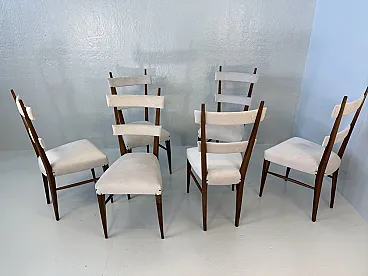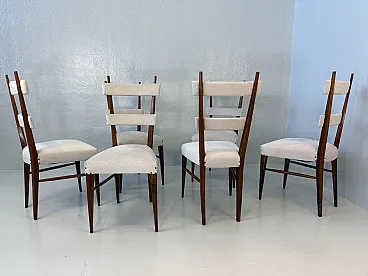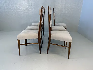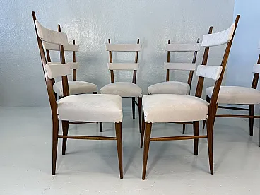 Design Chairs in Wood and Fabric attributed to Giò Ponti, 1950s, Set of 6