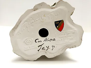 Giuseppe Tagliariol, known as Bepi Tay, was pupil of Giorgio de Chirico and a sculptor. Tay is above all known for his activity as a ceramist, which began in the second half of the 1950s at the Cacciapuoti factory in Naples. In 1960 he set up his own business, founding Tay in Monza, a ceramic manufacturer specializing in the production of animals, both in ceramic and porcelain. He is to be considered the most virtuous ceramist sculptor specialized in animalistic art ever. This bird was hand painted by the artist and in addition to all the Tay marks, it is also hand signed with an inscription ( "Con stima" - "With esteem"). It is a vintage piece, therefore it might show slight traces of use, but it can be considered as in perfect original condition and ready to become a piece in a home. Measures: Diameter: 13 cm Height: 20 cm. Order it now! We sell the best quality pieces and we offer an amazing service: if it's not during night time, we answer within 2 hours and we absolutely love to follow every step of the purchase and even after. As matter of fact we really appreciate our customers’ feedback and when we receive pictures of our pieces in their new homes. We assist you during the process and answer all your questions. In addition to this, we always review the pieces before shipping, so that you receive the goods at its very best. We provide the best possible quotes and professionally and carefully pack the items. Insurance is included. And if there is any issue, it is our mission to make so you don't have to worry: we will always be there for you to assist in any way possible.