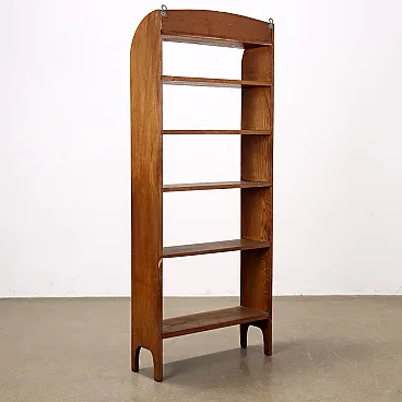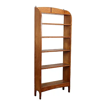 Art Nouveau showcase in oak, six shelves, the upper one recessed. Italy, late 19th century.
