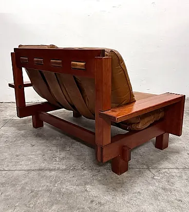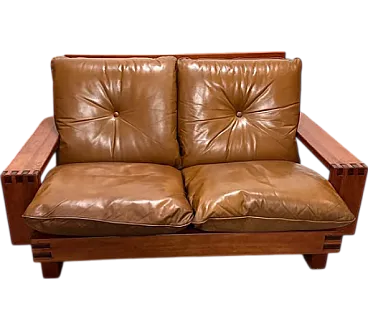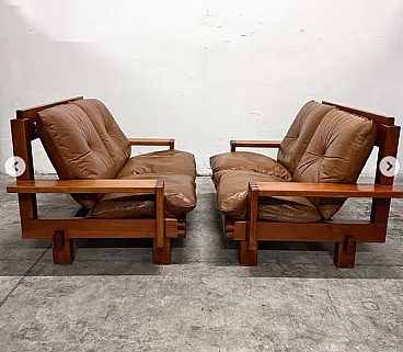 Pair of sofas by Giuseppe Rivadossi for Officina Rivadossi, from the 19th century. Walnut wood structure and both sitting and real leather cushions, excellent condition.