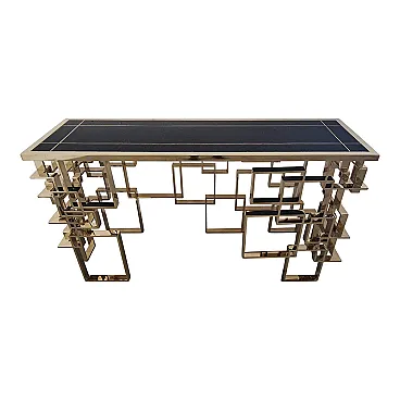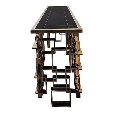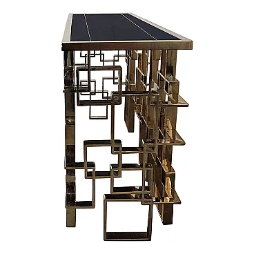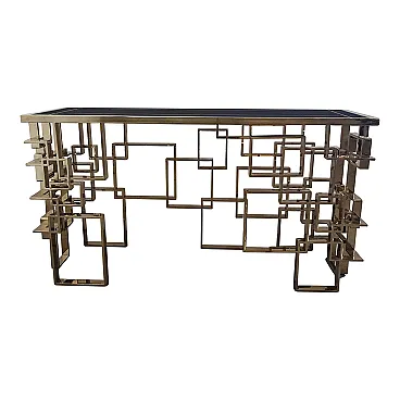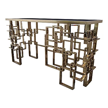 Bifacceral console in chromium-gold steel and Murano glass top, 90s