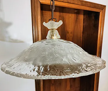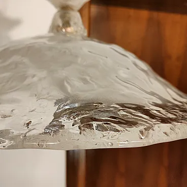 Elegant Murano glass chandelier, opaque and transparent crystal glass, coated steel chain.