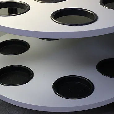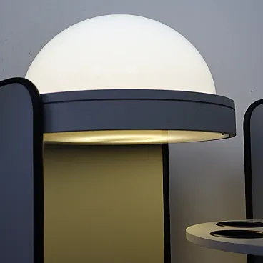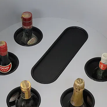 Italian modern land lamp from mid -century bar by Luigi Massoni, Italy, 1960 This splendid modern bar in mid -century bar, designed in Luigi Massoni's style in the 1960s, is a perfect mix of elegance and functionality. Characterized by its cylindrical shape and soft and modern lines, this piece is both a surprising designation of design and an addition to any interior. The bar can be divided into two sections, each equipped with three wheels, which allow easy mobility and a flexible positioning. This unique feature increases its versatility, making it ideal for different spaces and configurations. One of its most distinctive aspects is the double lighting system, with an internal and external lamp. The external lamp consists of a large white plexiglass dome with a diameter of about 50 cm, which provides a soft and widespread light that enhances its sculptural presence. The internal lamp illuminates the bar storage area, making it practical and visually captivating. Inside, the bar offers five dedicated compartments for bottles, guaranteeing an organized and elegant space to preserve and prepare drinks. The original switches of the time add authenticity to this extraordinary piece. With dimensions of 60 cm in diameter and 80 cm in height, this mobile bar is compact but impact, which makes it suitable for both modern interiors and vintage inspiration. In excellent general conditions, it has only slight signs of the time, which enhance its vintage character. A rare and collectible object, this mobile bar embodies the refinement and craftsmanship of the Italian design of the mid -century, making it a prominent addition to any home, living room or entertainment space.