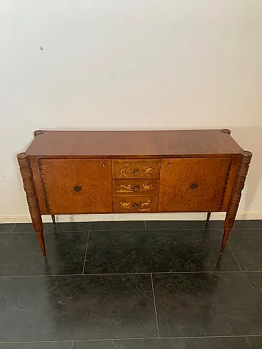 Oak and maple burl sideboard, widely popular in the 1950s.