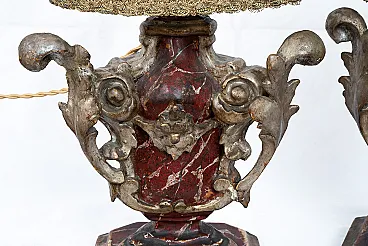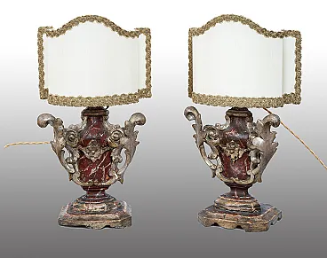 Pair of ancient Louis XIV lamps in silver and mixture with lacquering