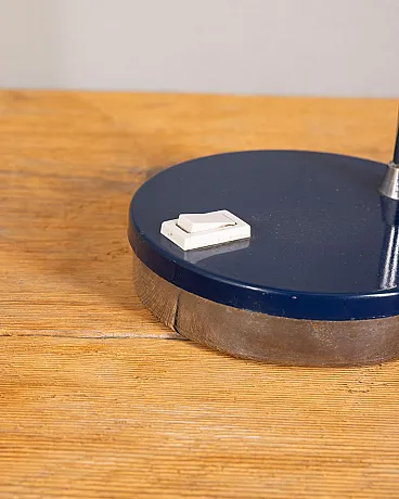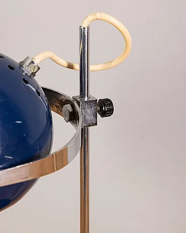 Table lamp in chromed and blue metal, "Eye ball" model, design by Goffredo Reggiani, 1970s.