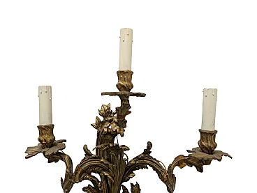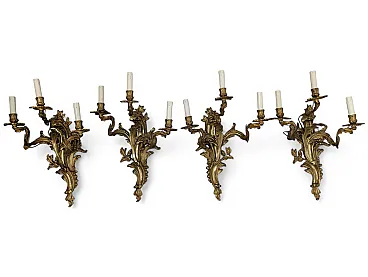 Set of 4 rococo style appliques in golden bronze with 3 lights with E14 attack. The applique present themselves in excellent condition. Working electric component. Dimensions 58 x 40 x 20 cm (height, width, depth) Sku 401553