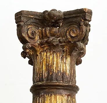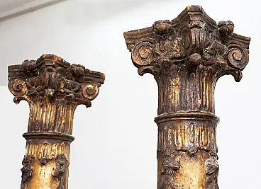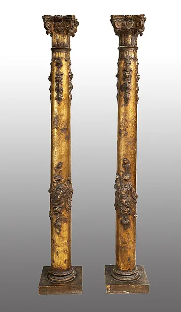 Pair of columns in golden and carved wood, early 18th century