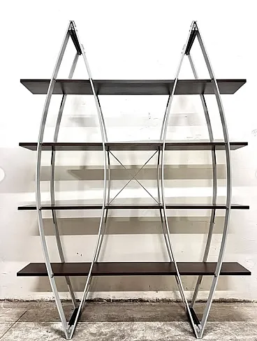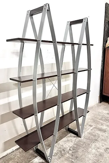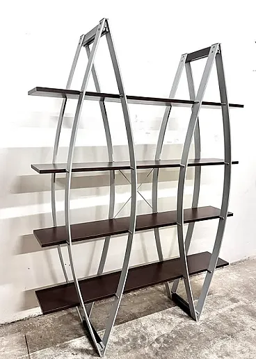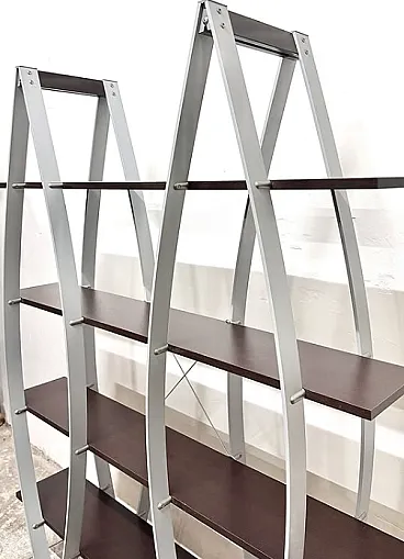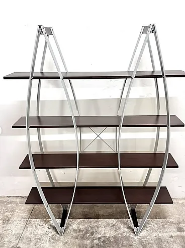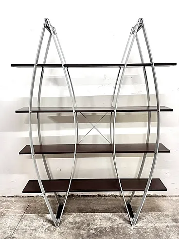 MARCELLO ZILLIANI's completely removable bookcase for synthesis, published in the early 2000s. Aluminum structure and four wooden shelves, perfect condition.
